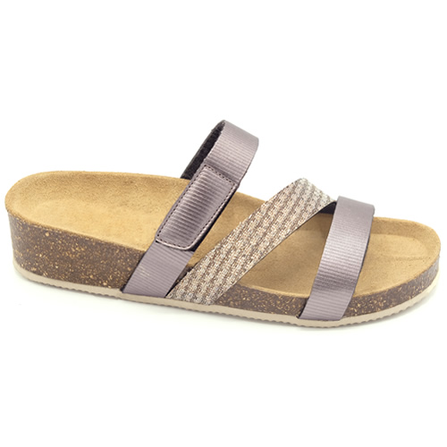 Palmilhas anatómicas em gel e macias, revestidas a pele, que garantem apoio, estabilidade e conforto ao caminhar.