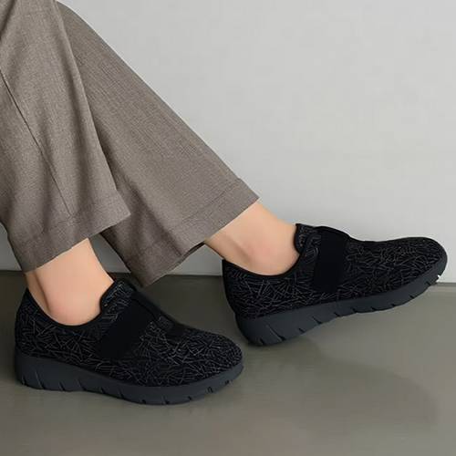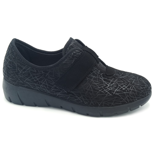Ajustável à largura do pé com velcro, palmilha forrada a pelo macio sintético e respirável. Material elástico ajustável.